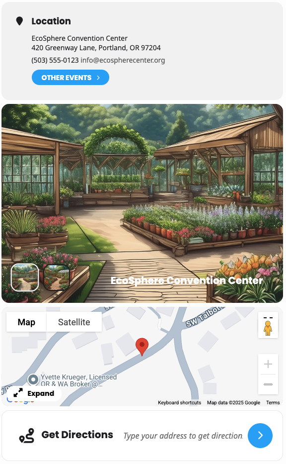 Location Info over Location Image | If you add a location image for the location, this will show location name and description over the location image. — Location Image must be added to EventCard via EventCard Designer. |