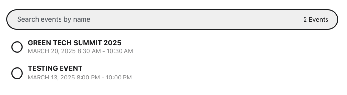 - Click on desired related event, a check mark will appear to indicate selection.