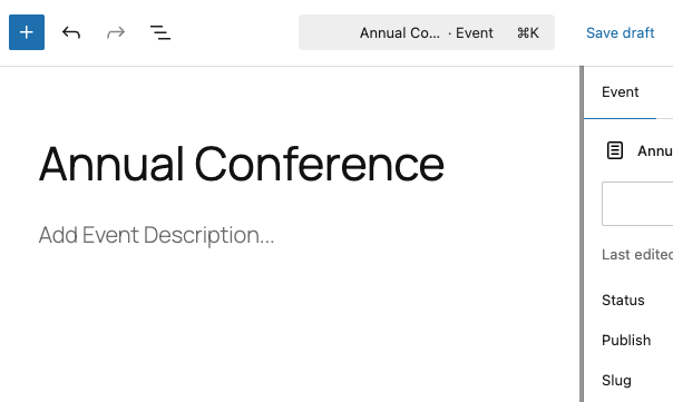 - In the Gutenberg editor below, write the Event Description using blocks for text, headings, or media.