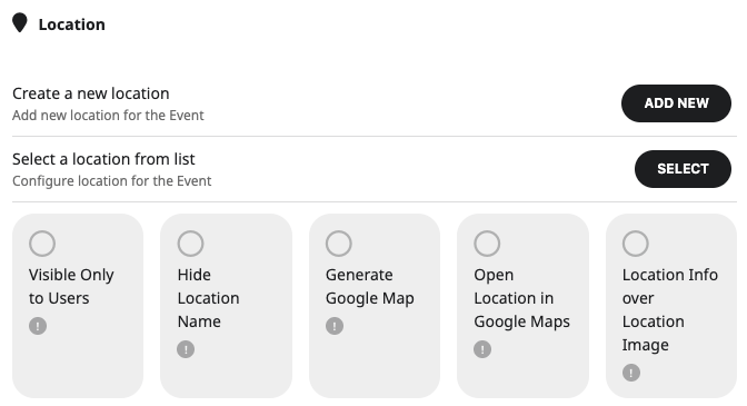 Visible Only to Users | Make event location only visible only to registered users of your website. |